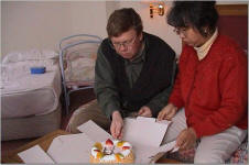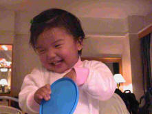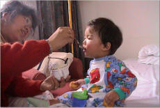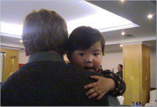 of age, most of them start talking and they are more alert too. We have noticed that Anna had been breathing very heavily since we got her. Toby had many episo of brochodis when he was baby, so we immediately knew that Anna had brochodis. We offered her a plenty liquid. The other baby from Huainan also sounds the same. She bonded to Toby and Joshua very quickly. She let Toby hold her while we were still doing paper work. She smiled for the first time in the afternoon when Joshua started to dance for her. A small smile, but was very sweet. A smile we had been waiting for. She spent a quite a lot of time just simply staring at us, one by one. Everything is so new for her. We did not want to go out to get anything to eat. We wanted simply being with her. Sue ordered a birthday cake for Berthold and to celebrate our new family union. After a nap, we went to the market. We needed so many things – bottles, diapers, clothes which fit. We had over estimated her ability and size. The clothes we brought are too big for her. The pull-ups would not last long. She slept peacefully overnight without waking up. We just could not keep our eyes off her. We are so blessed to have her. She is a little angel! |